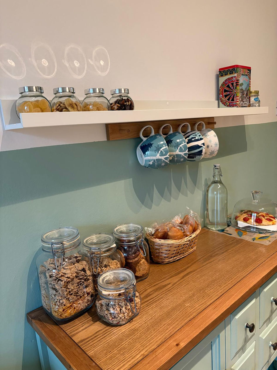 At guests' disposal: milk, coffee, tea, herbal teas, cappuccino, jam, honey, yogurt, biscuits, bread, juices, seasonal fruit